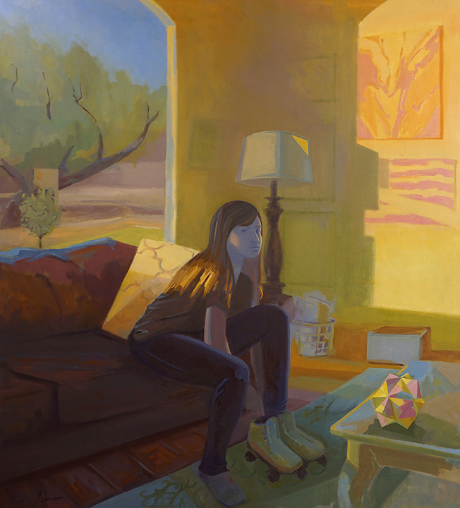 - Lacing Up, Oil on linen 56×52