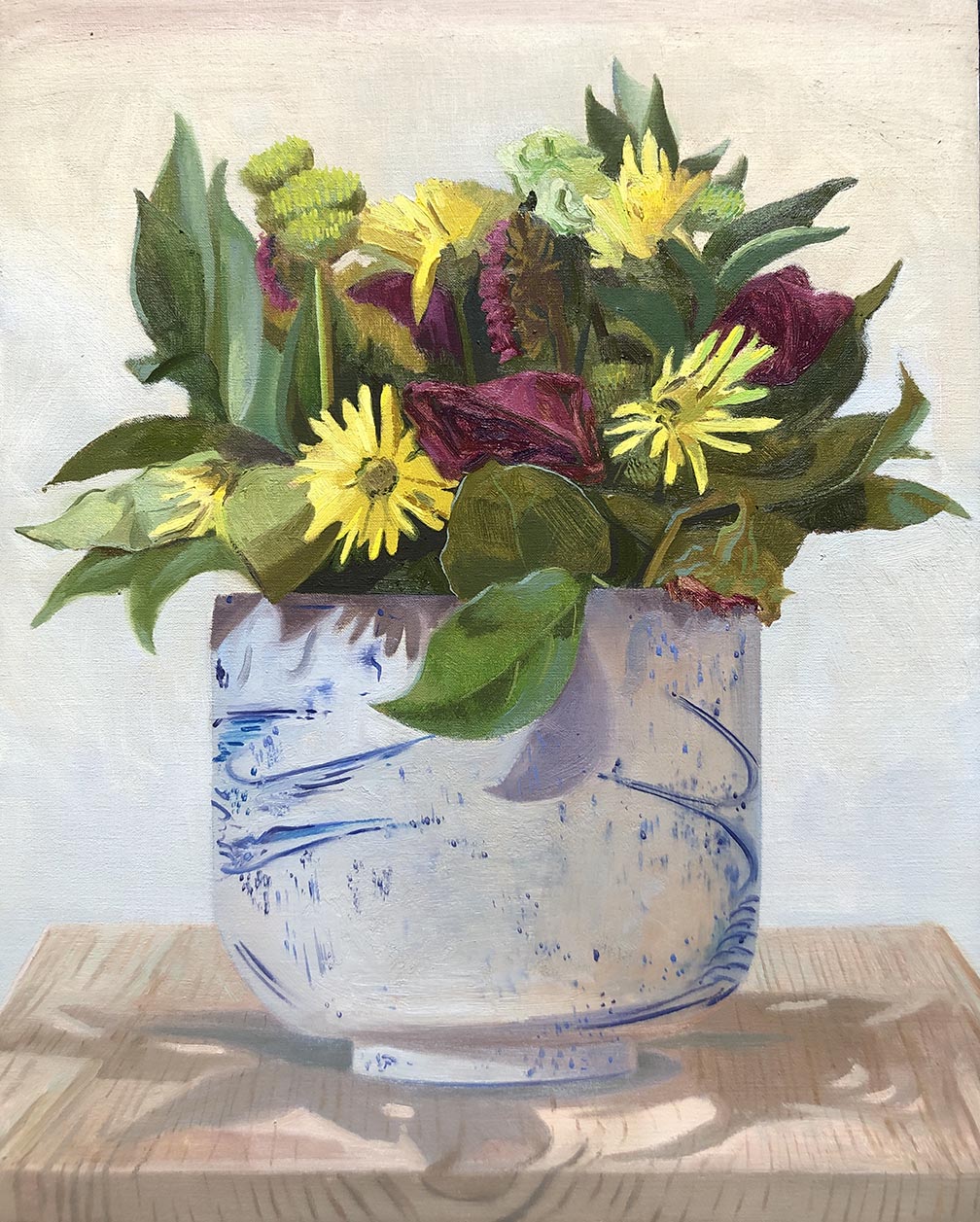 - NC Bouquet Dandelions and Roses, Oil on linen 20×16